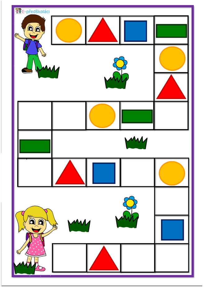 - Dokážeš pojmenovat tvary? Ty se pravidelně střídají, doplň cestu.